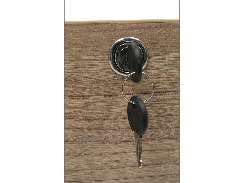 - тумба снабжена центральным замком и оснащена пластмассовым лотком для канцелярских принадлежностей в верхнем ящике